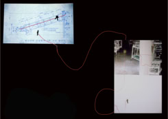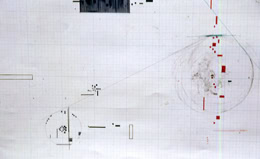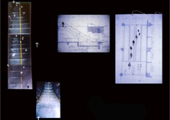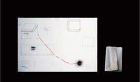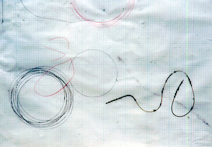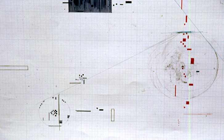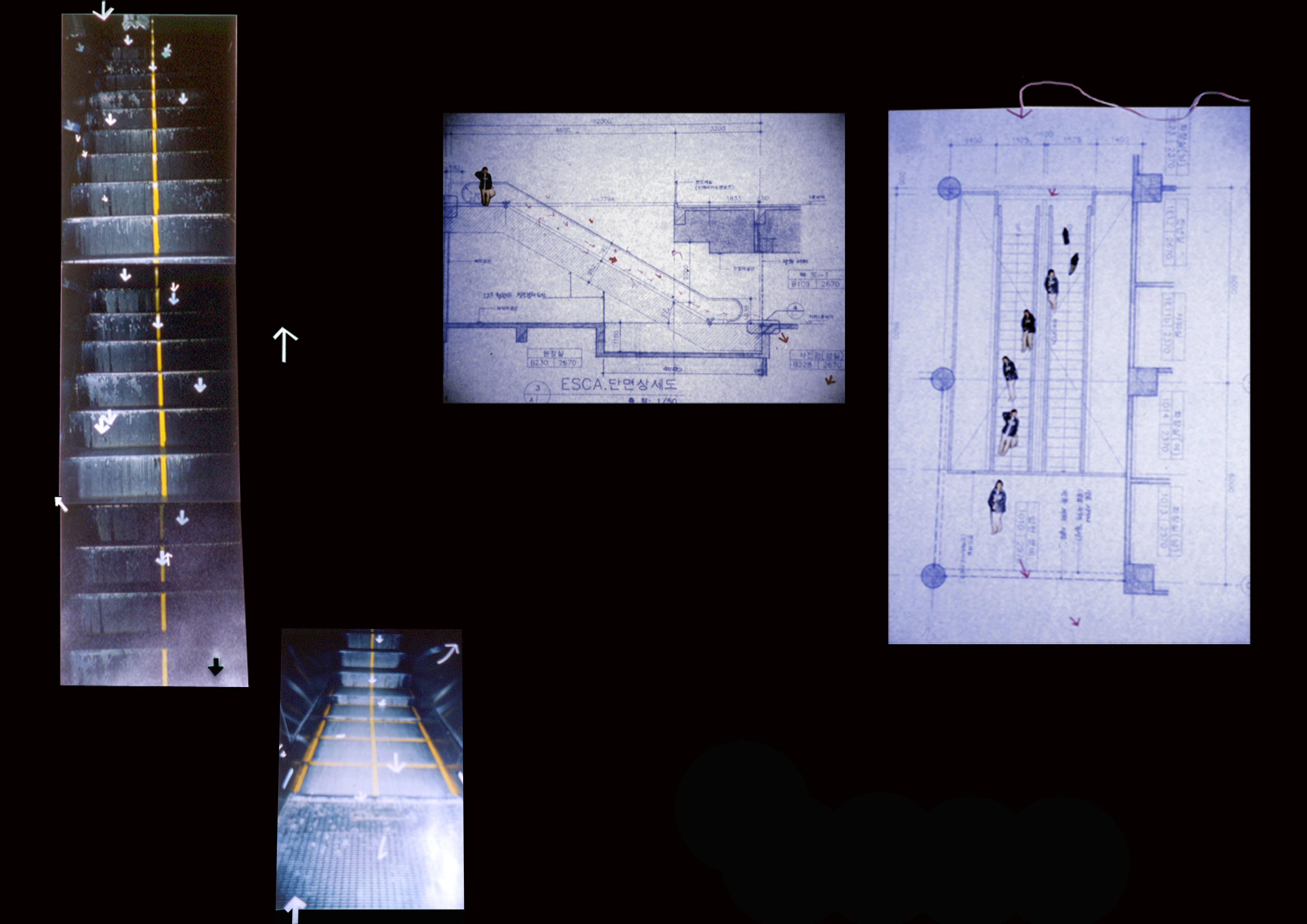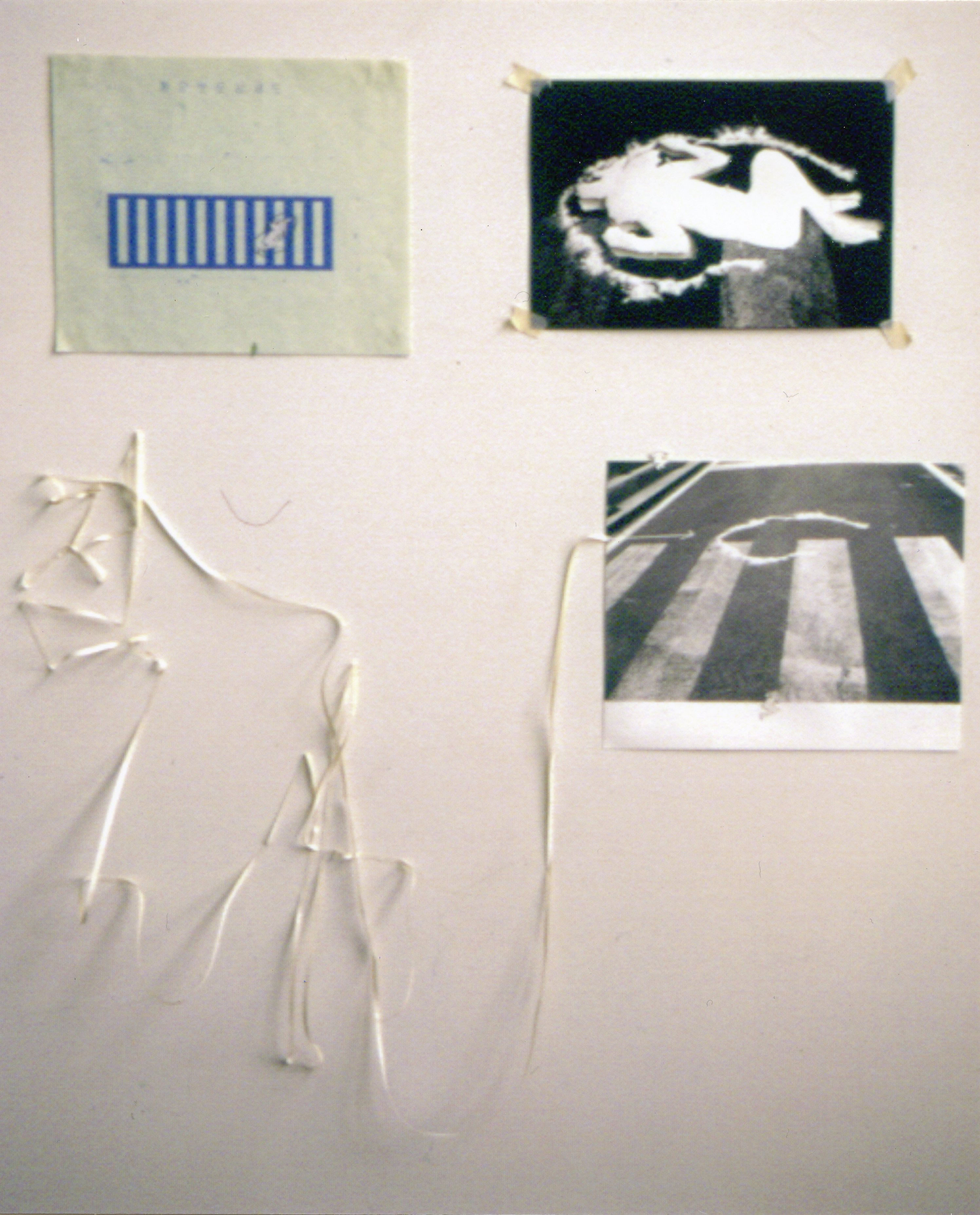 scribble, graph paper, blueprints, tapes, powder, photographs, movement,